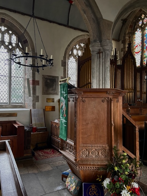 The Grade 1 listed Holy Trinity Church dates from the 15th and 16th centuries and is undoubtedly the centre-piece of the village. Its atmospheric interior boasts colourful stained-glass windows and attractive furnishings, particularly the pews with their carved bench-ends, added relatively recently at the behest of the Drewe family of Castle Drogo.