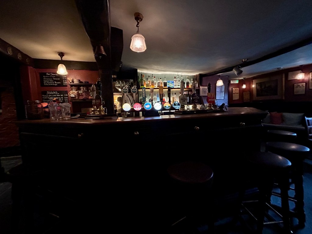 After quenching our thirst for ancient history, it’s time to visit the pub to quench a different thirst. The Castle is a lovely unspoilt 16th century inn with cosy, well-stocked bars, low ceilings and a roaring fire in winter. What’s not to like?