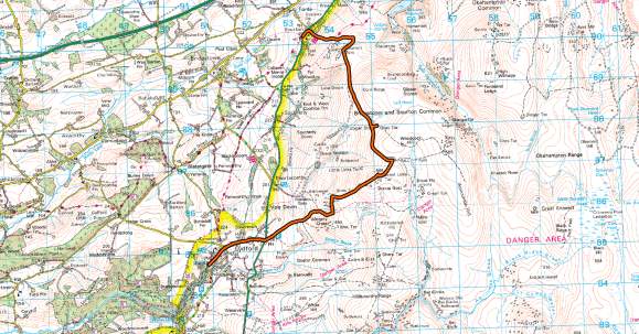I can take no responsibility for any loss or injury caused by following the above walk. The description is an accurate outline of the route and should enable you to follow the walk on an OS map, but the walk should not be attempted without a map, compass and the ability to use them!