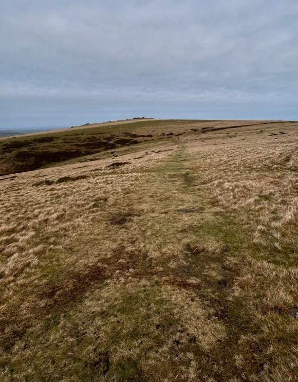 The path steepens as it ascends towards Sourton Tors and we leave the two “Ways” as they turn left at 541901 and continue upward and ahead to round the northern end of the ridge on which the tors sit.
