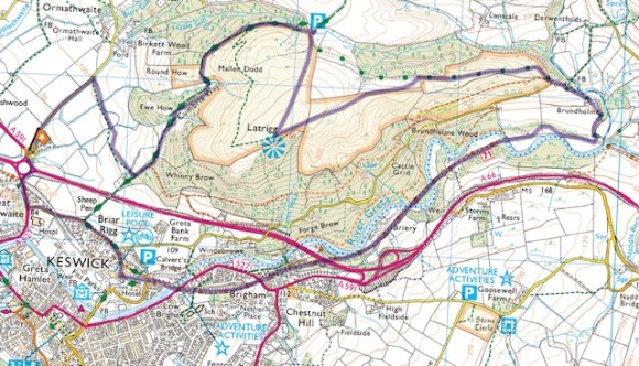 An observation from Wainwright seems to validate my including this walk as an “Over The Hill Hike”. He describes Latrigg as;