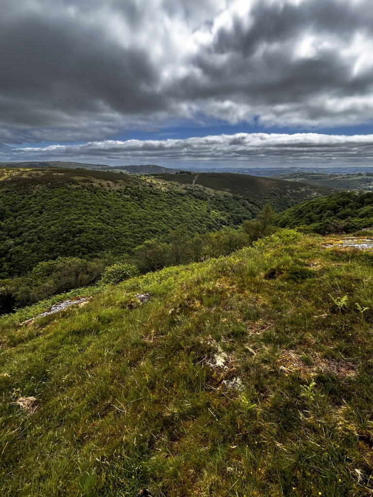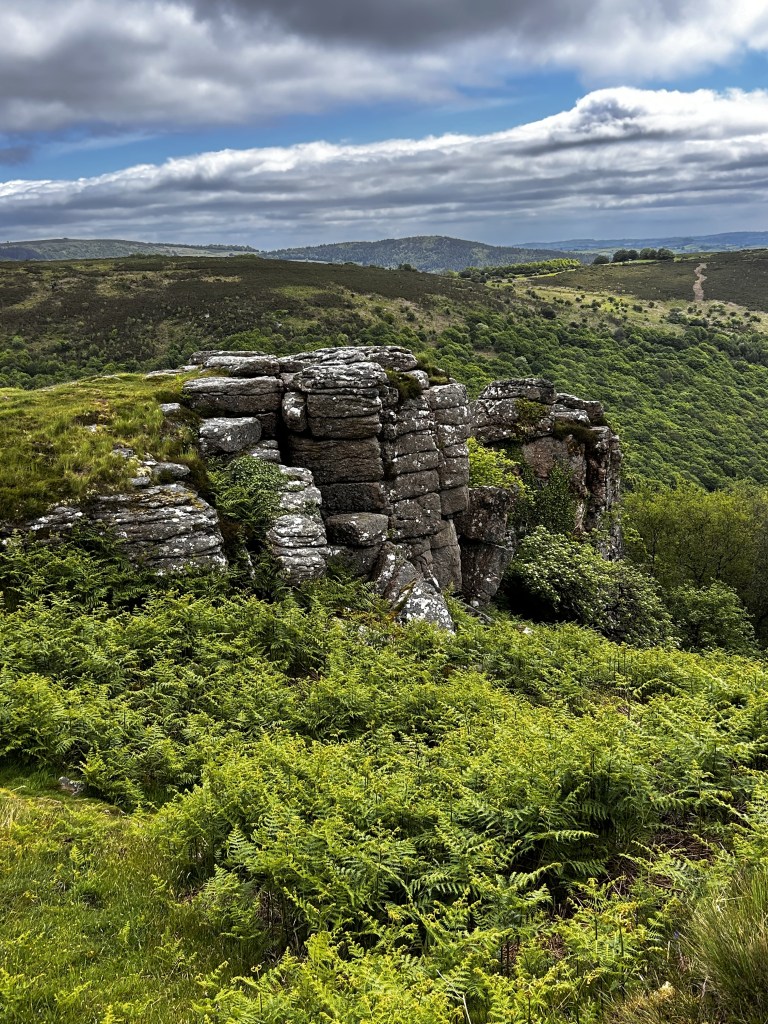 Bench Tor, which we’d never visited, stands atop a distinct promontory high above the River Dart. It comprises an impressive cluster of granite outcrops, with its most prominent, “North Tor”, offering superb views into the heavily wooded Dart valley far below and back towards Venford Reservoir.