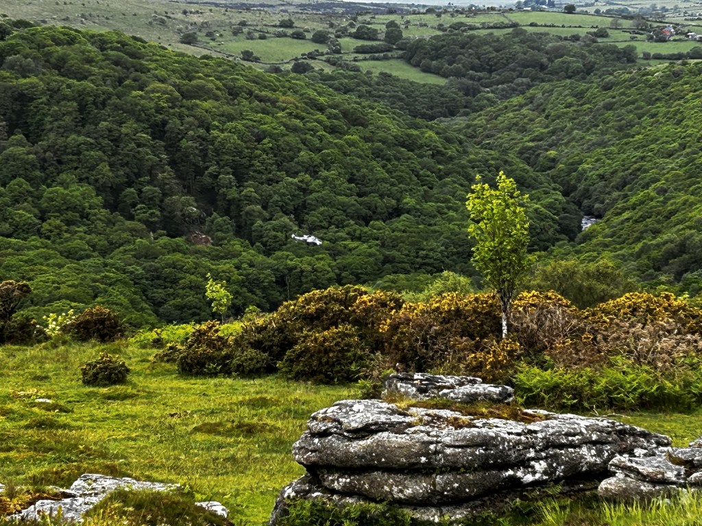 After marvelling at the low-flying skills of the helicopter pilot, possibly on his way home to the Royal Marine camp at Lympstone from the training areas on the north moor, we continued to the end of the Bench Tor ridge and turned in a south westerly direction towards the valley of Venford Brook.