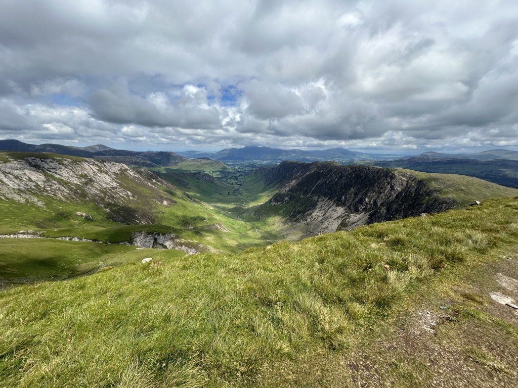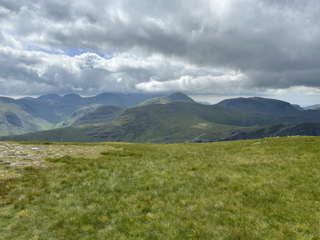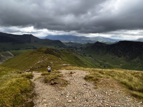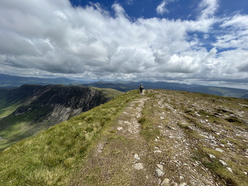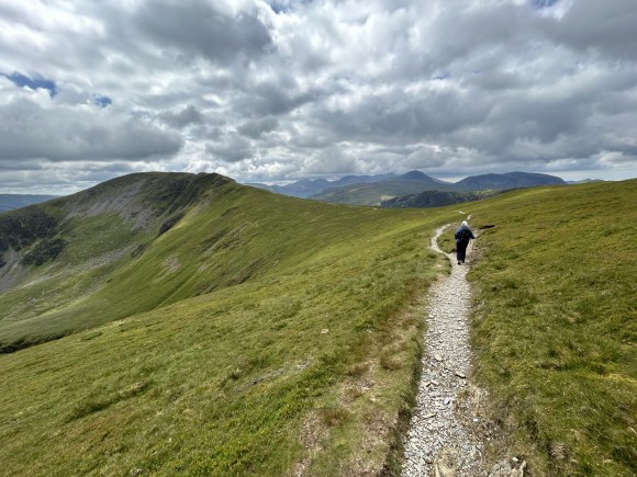 The view from the summit is superb in all directions and includes the Skiddaw group to the north and the imposing Helvellyn ridge to the east. Impressive by any standards but, amazingly, not the best view we’ll see today.