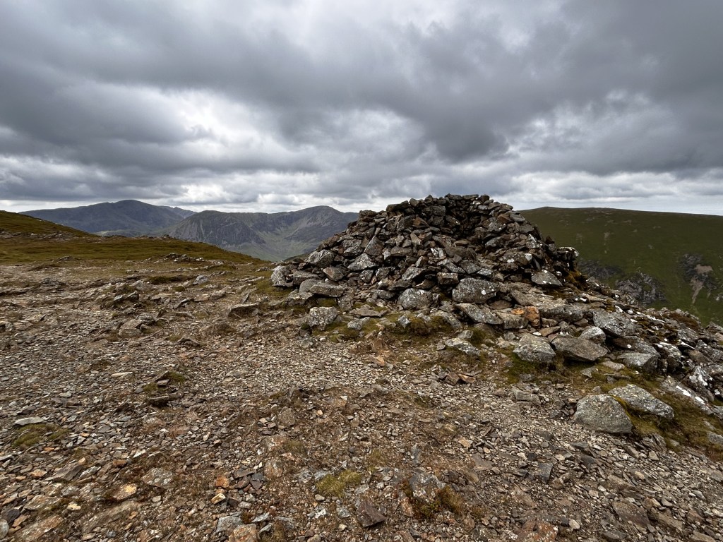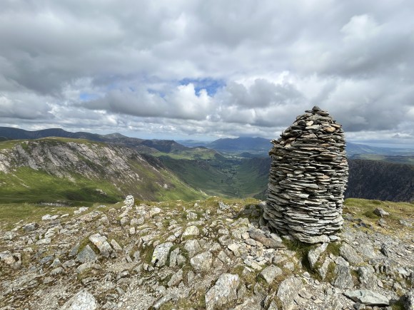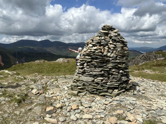 The impressive cairn marking the summit of High Spy has been vandalised a few times over the years, but always seems to return quickly to its former glory. The summit marks the crest of a ridge that forms the Borrowdale / Newlands watershed and ends at Catbells.