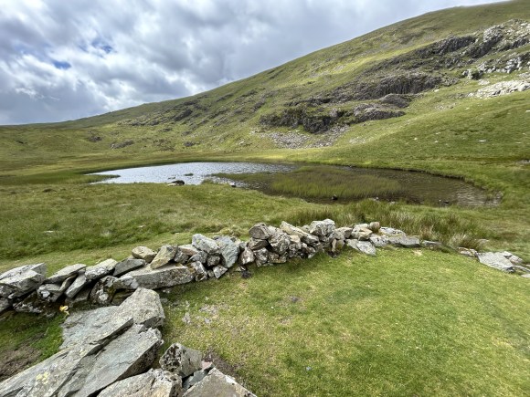Descend from Dale Head on the steep ridge heading eastwards on a well-marked but steep path that turns right just above Dale Head Crags (at GR 226155) and takes us to Dalehead Tarn. The sheep fold here provides a perfect, sheltered spot for lunch.