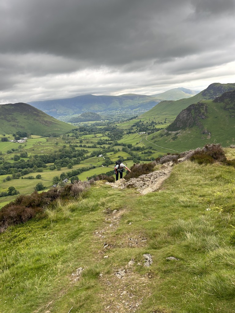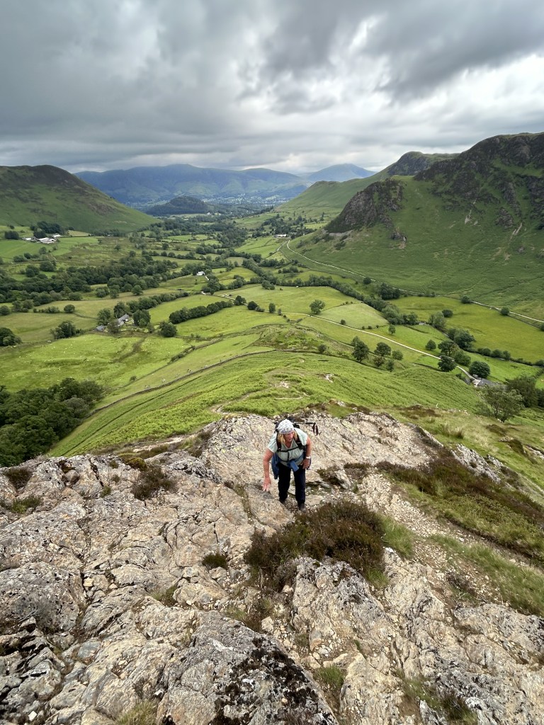 There are various, longer versions of this walk adding one or both of Catbells and Robinson, but we decided to keep it simple (and shorter) and follow the walk described in “Fellwalking with Wainwright” by that most celebrated chronicler of Lakeland fell-walks. We are nothing if not purists: but we are also people who these days don’t actively seek out the toughest routes where easier options are available.