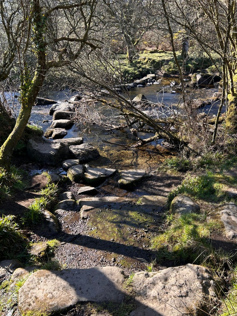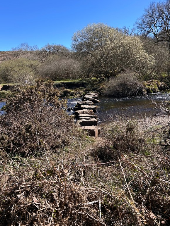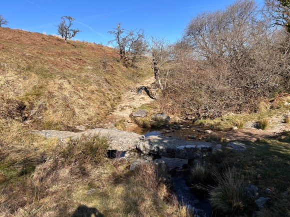 | TERRAIN | Generally good underfoot on decent footpaths (not all shown on the OS map), with a little cross-country walking on Holne Moor in search of pre-historic antiquities. But, the walk is best done after a period of dry weather, otherwise the two sets of stepping stones crossed during the walk may be submerged. |