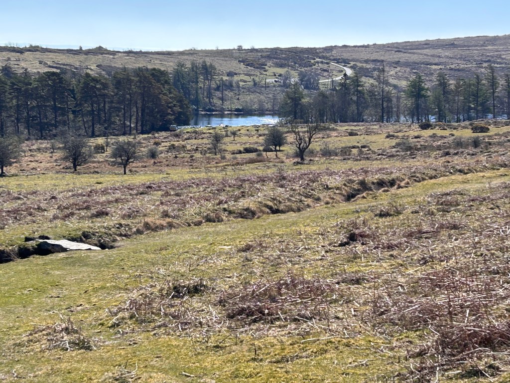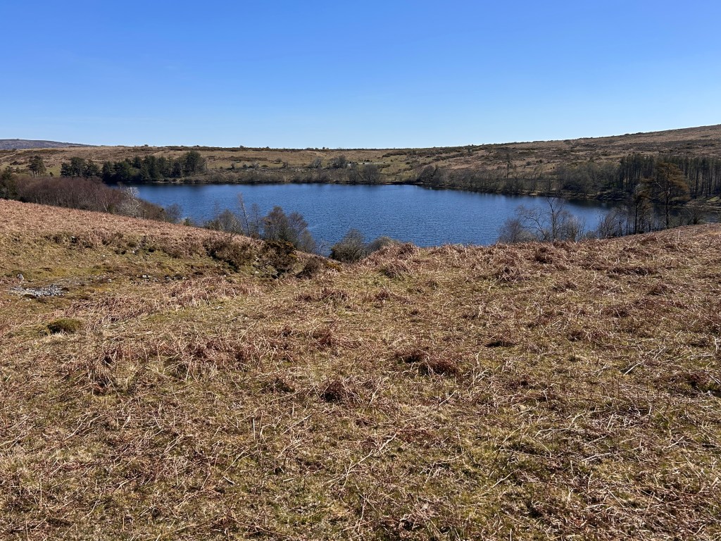 Continuing downhill I heard my first cuckoo of the Spring calling from the woods below Venford Reservoir, which we can now see on our right. We soon cross Holne Moor Leat again and head towards the left end of the woods where we turn right to reach the reservoir: do not be tempted to go by a more direct route towards the reservoir as it can be boggy here, particularly after rain.