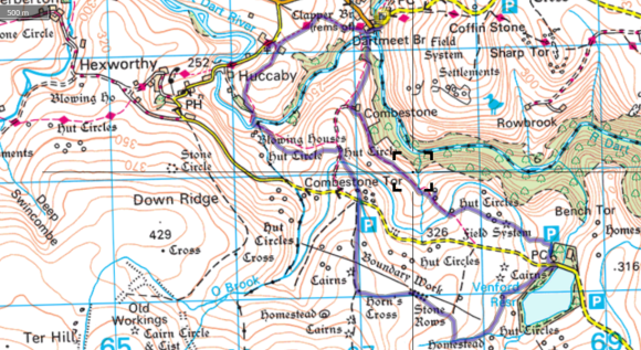 This walk starts from the tourist honey-pot of Dartmeet, on the East Dart River just upstream from its confluence with the West Dart. It’s a varied ramble providing some fine panoramic views and visiting rivers, leats, and a host of antiquities and relics of the moor’s more recent industrial past.